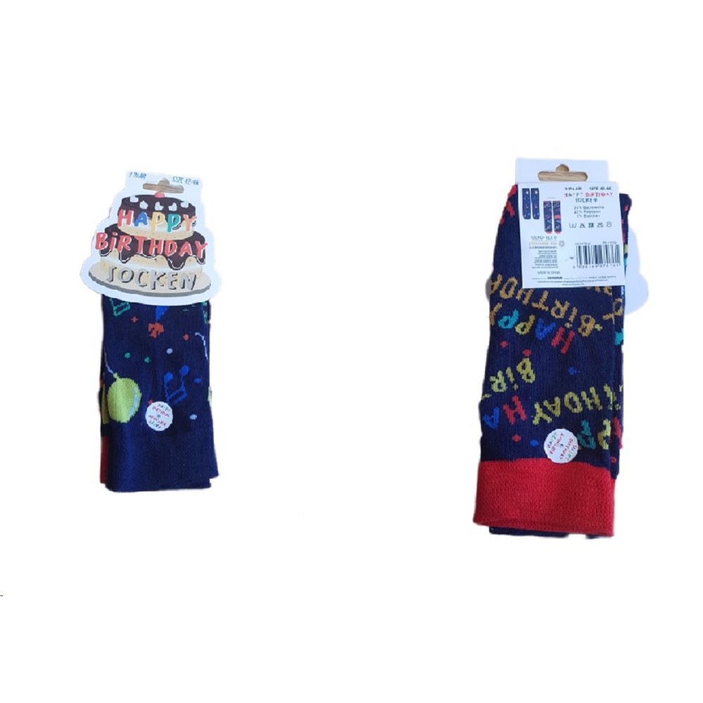 Ponožky 1184012-E Happy Birthday 2 páry Ponožky Happy Birthday 76% bavlna 22% polyester 2% elasthan Ponožky jsou balené po 2 párech Jeden pár s nápisem Happy Birthday druhý pár ponožky s obrázky Velikosti 36-41 42-46