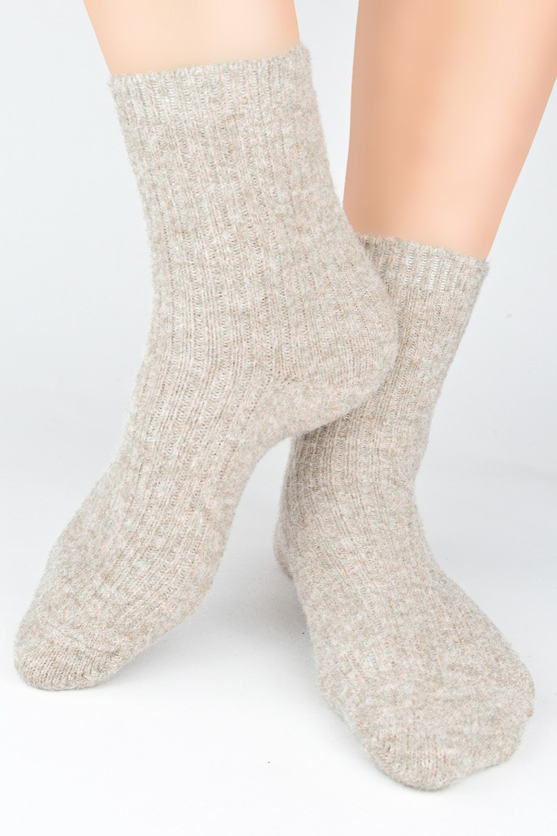 PONOŽKY BEZ TLAKU HLADKÉ S VLNOU SB133 tmavě béžová 36-41