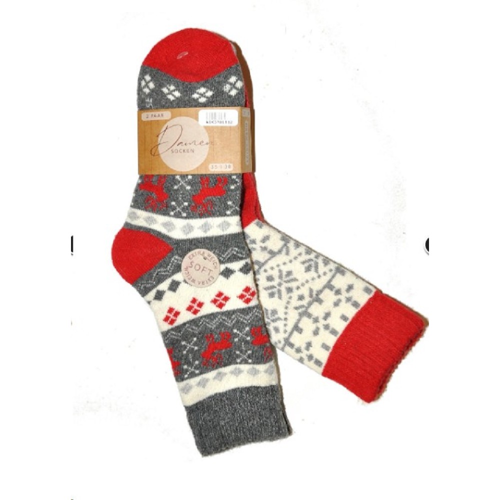 Ponožky dámské 37811 vlněné 2 páry v balení. K zimnímu období neodmyslitelně patří teplé ponožky. Pořiďte si i vy krásně sladěné a teploučké ponožky s vlnou nebo obdarujte své blízké. 2 páry v balenízimní vzorbarvy: červená, šedá, smetanovápevnější, pružný lem řetízkovaná špička materiálové složení: 35% polyester, 30% polyakryl, 20% polyamid, 12% vlna, 3% elastan.