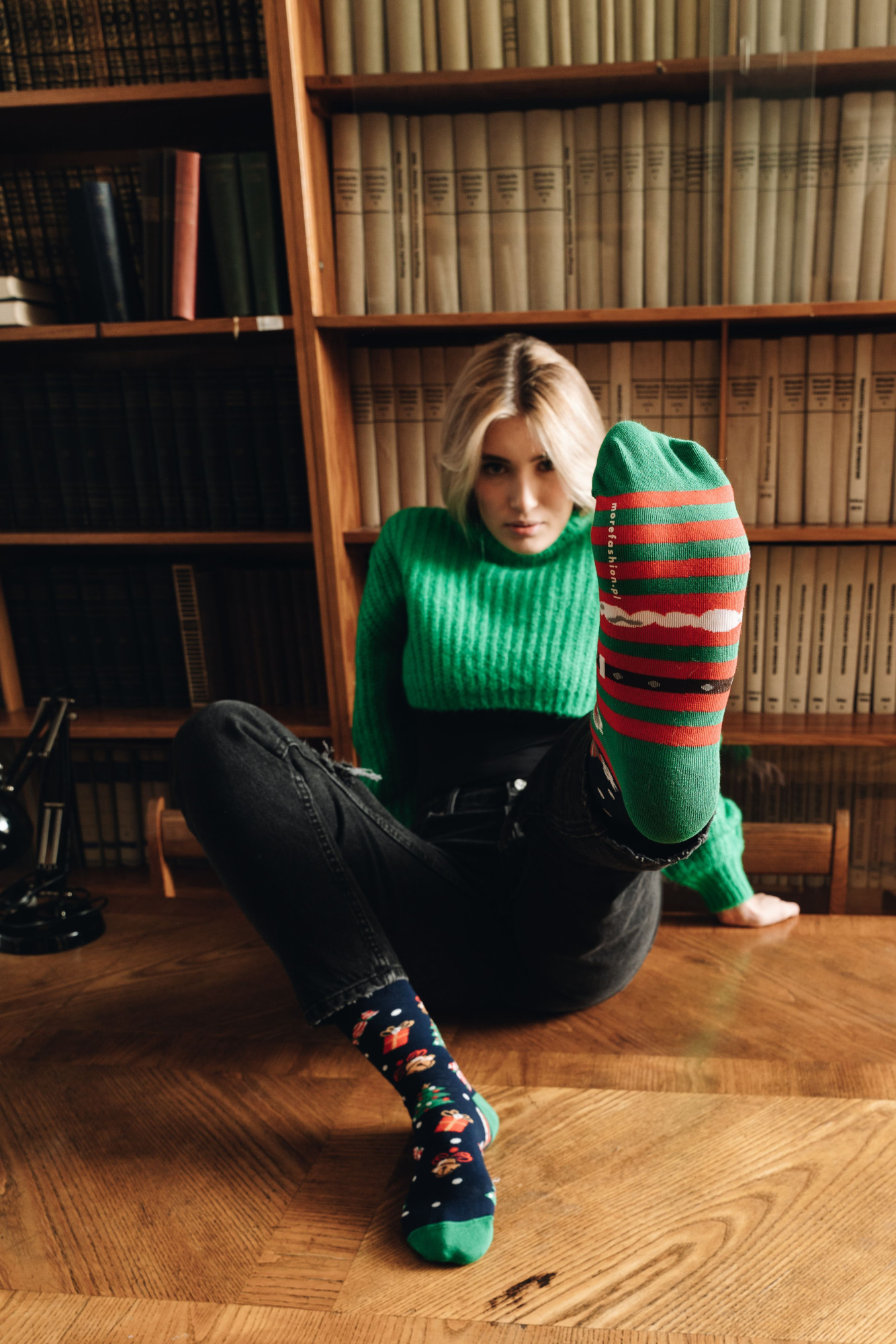 Ideální také jako dárek Měkká a vzdušná tkanina Vánoční motiv Neprojevuje se pod oblečením Polský výrobek Vysoké ponožky Vysoká kvalita Lemování na špičkách Oplechování na patách Bavlna: 75% Elastan: 2% Polyamid: 16 % Polypropylen: 7 %