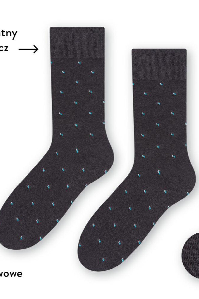 Jemné vzorované pánské ponožky k obleku. Ponožky jsou vyrobené z velmi kvalitní příze a jsou pohodlné, odolné a mají dlouhou životnost. Složení: 71 % bavlna, 22 % polyamid, 4 % polypropylen, 3 % elastan.