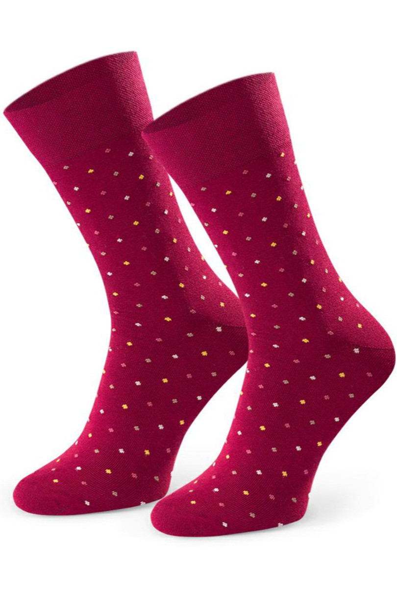 Jemné vzorované pánské ponožky k obleku. Ponožky jsou vyrobené z velmi kvalitní příze a jsou pohodlné, odolné a mají dlouhou životnost. Složení: 71 % bavlna, 22 % polyamid, 4 % polypropylen, 3 % elastan.