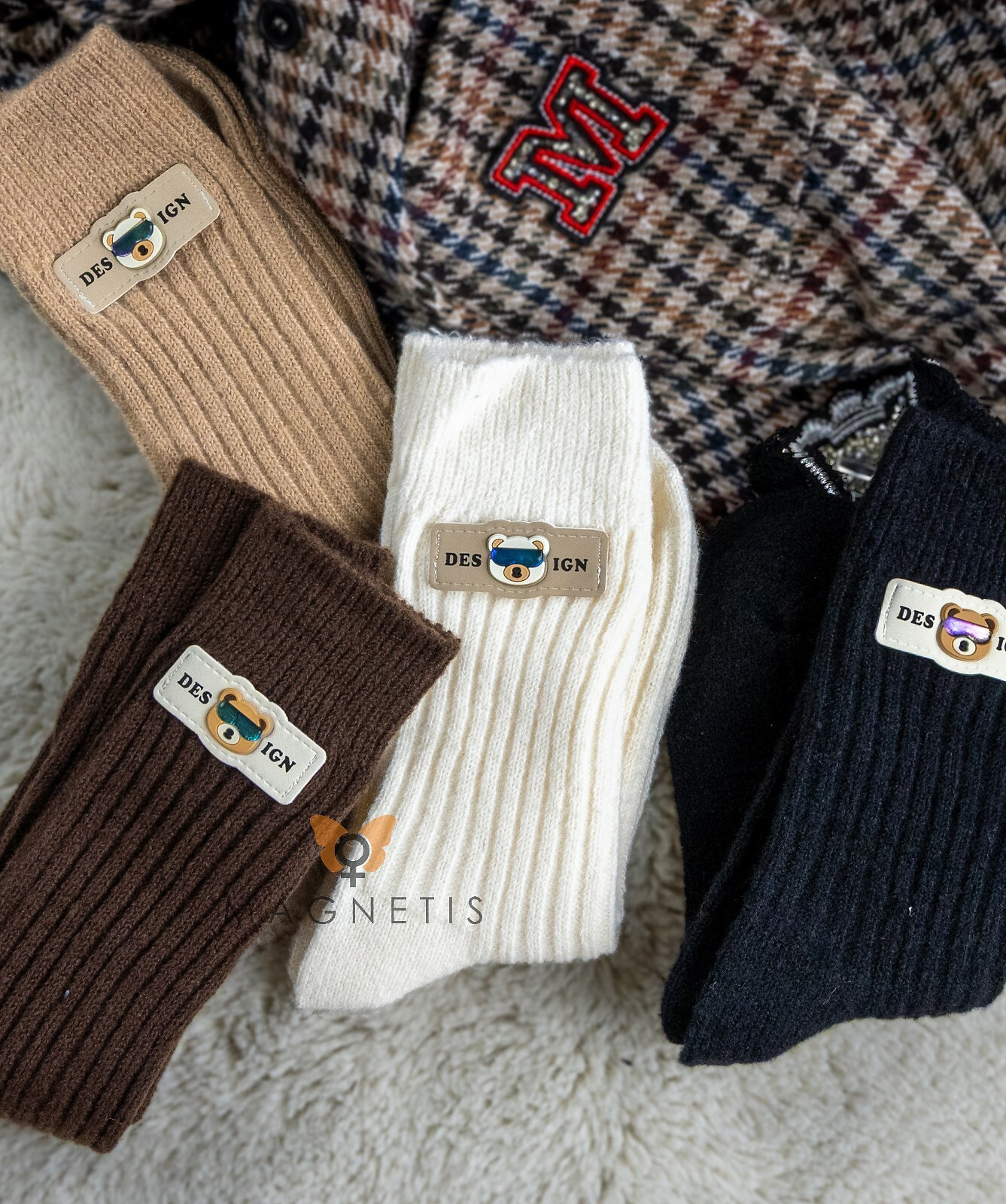 Teplé dámské ponožky - měkká pletená žebrovaná tkanina - svršek zdobený aplikací medvídka s brýlemi - pohodlný, netlačící lem Složení: 65 % bavlna, 13 % viskóza, 13 % vlna, 6 % polyamid, 3 % elastan