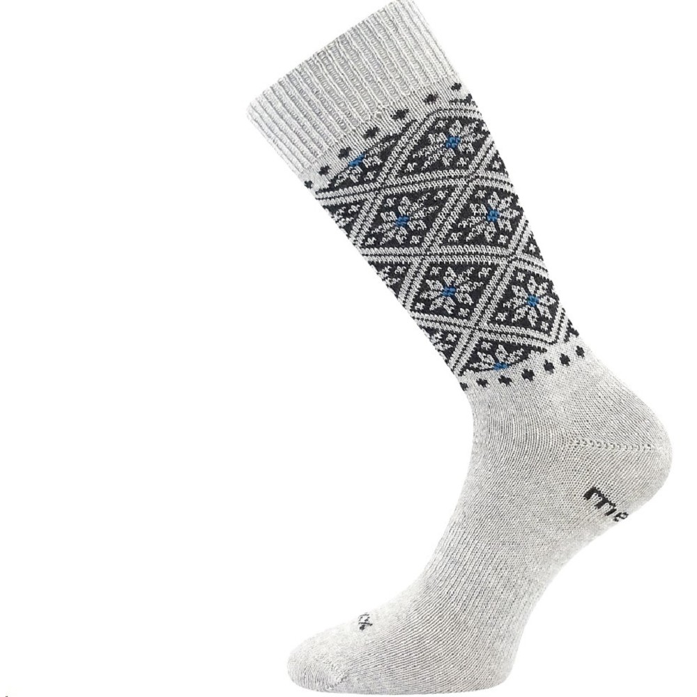 Ponožky NORDKAPP dámské Voxx světle šedé jsou dokonalým společníkem pro chladné dny. Díky vysokému podílu merino vlny poskytují vynikající teplotní komfort a díky přidaným iontům stříbra jsou přirozeně antibakteriální, to pomáhá chránit před vznikem bakterií a nepříjemným zápachem. Norský vzor: Tyto ponožky zaujmou svým oblíbeným norským vzorem, který je nejen esteticky příjemný, ale také nadčasový.Jemný lem: Velmi jemný a nestahující lem zajišťuje, že ponožky neškrtí a poskytují maximální pohodlí po celý den.Řetízkovaná špice: Špice spojená řetízkováním je hladká a netlačí, což přispívá k celkovému komfortu při nošení. Ideální pro zimní období: Tyto klasické zimní ponožky patří do teplotní třídy C, což je činí ideálními pro chladnější období s teplotami od -20°C až do +5°C. Hlavní parametry: Materiál: Merino vlnaAntibakteriální ochrana: Ionty stříbraDesign: Jemný lem a řetízkovaná špice Tyto dámské ponožky jsou perfektní volbou pro ty, kteří hledají spojení stylu, funkčnosti a komfortu během chladných zimních dní. Velikosti 39-42 35-38