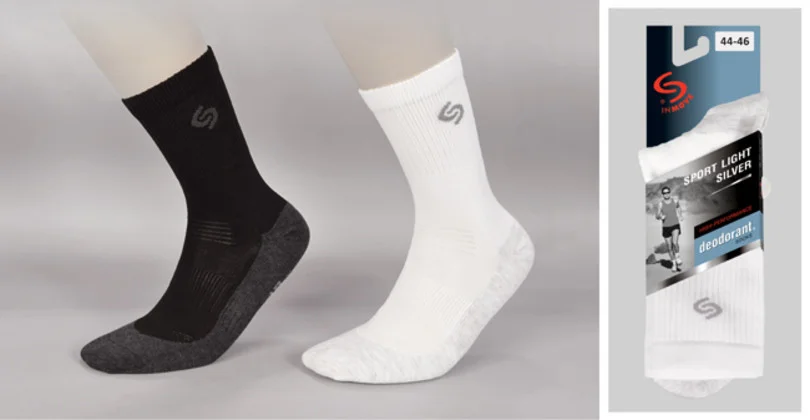 Bezešvé tenké sportovní ponožky s obsahem stříbra. Složení: 50 % Prolen Siltex se stříbrem, 25 % polyamid, 22 % bavlna, 3 % Lycra. Tyto univerzální tenké sportovní ponožky jsou ideální pro sport v horkých letních dnech. Model je možné nosit jak v tradiční sportovní obuvi, tak i v obuvi nižší a lehčí. Zpevněná tkanina chrání spodní část chodidla a Achilovu patu. Díky modernímu vláknu PROLEN SILTEX je vlhost odváděna do vrstev vzdálenějších kůži, a proto chodidla zůstávají suchá. Na špičkách je ventilační oblast, která spolu s PROLEN SILTEX urychluje odvádění vlhkosti. Díky moderní přízi LYCRA se ponožky dokonale přizpůsobují chodidlu a noze. Pružný pruh ve středu chodidla a tkanina na patě vytvarovaná do tvaru písmene "Y" předchází přesouvání se ponožek. Model je bezešvý, a proto je při nošení pohodlný a předchází vzniku odřenin. Díky obsahu stříbra v přízi PROLEN SILTEX plní ponožky i roli deodorantu. Stříbro působí antibakteriálně a antimykoticky, předchází vzniku nepříjemného zápachu a je zárukou svěžesti a komfortu při nošení.