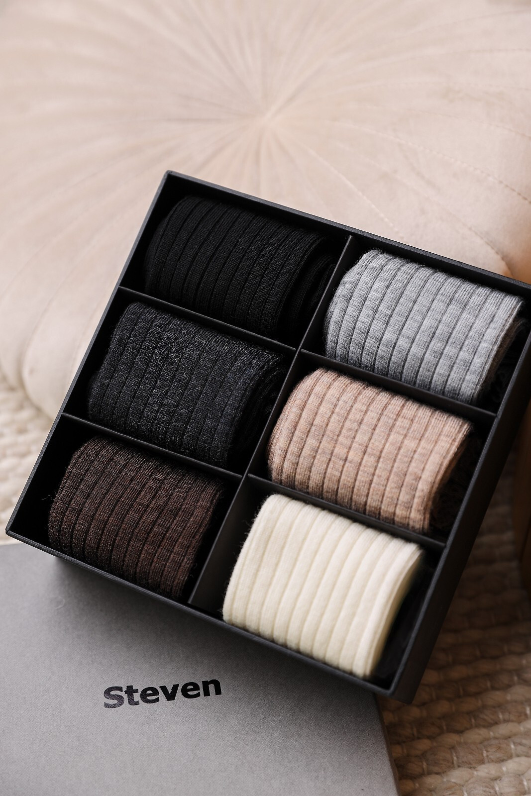 Sada dámských ponožek z merino vlny - jemné žebrování - bezešvý šev - netlačící lem - dostupné barvy: černá, ecru, graphite mélange, brown mélange, grey mélange, beige mélange - baleno v krabici po šesti párech - ideální jako dárek Složení: 79 % vlna, 20 % polyamid, 1 % elastan