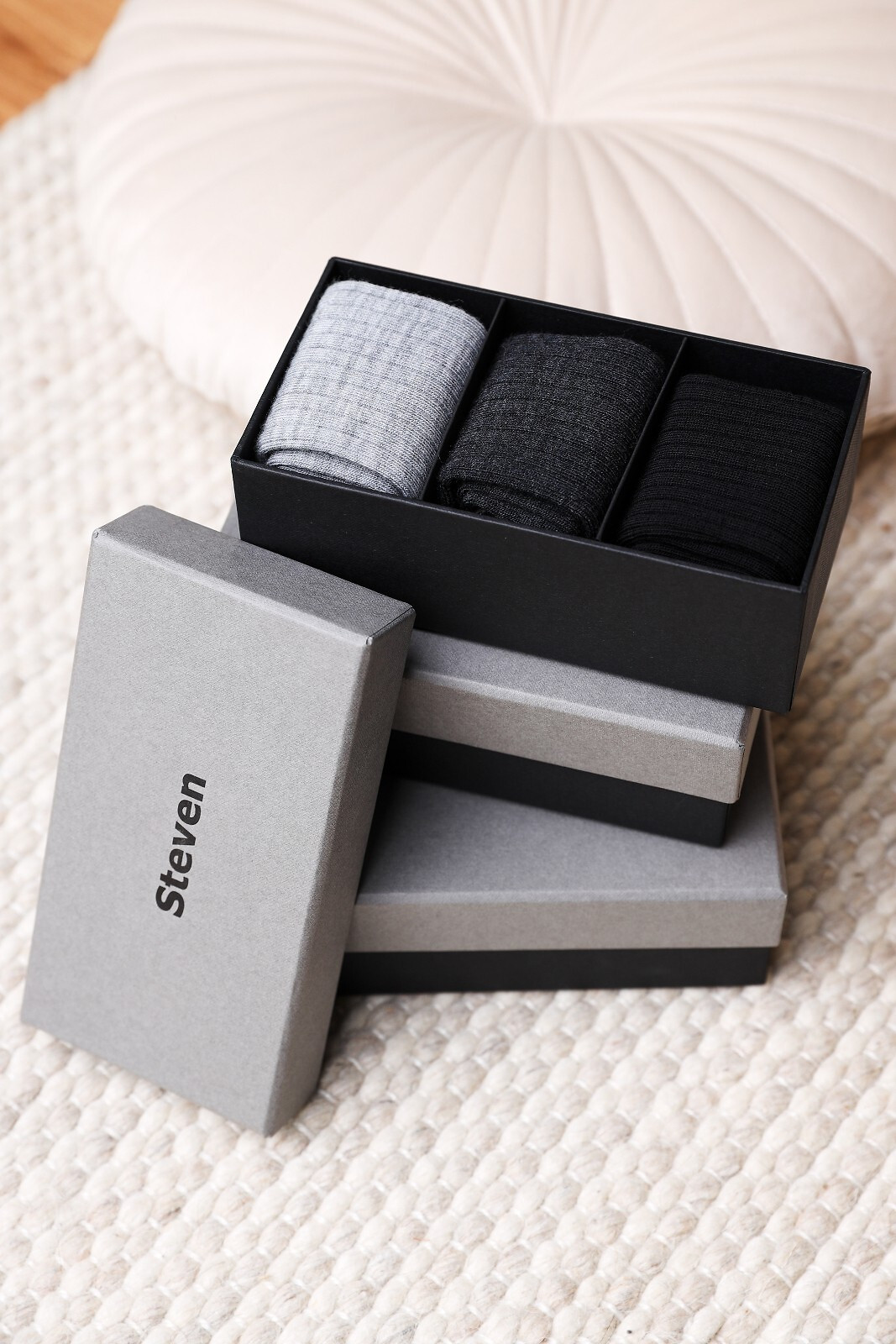 Sada dámských ponožek z merino vlny - jemné žebrování - bezešvý šev - netlačící lem - dostupné barvy: černá, grafitový melanž, šedý melanž - baleno v krabici po třech párech - ideální jako dárek Složení: 79 % vlna, 20 % polyamid, 1 % elastan