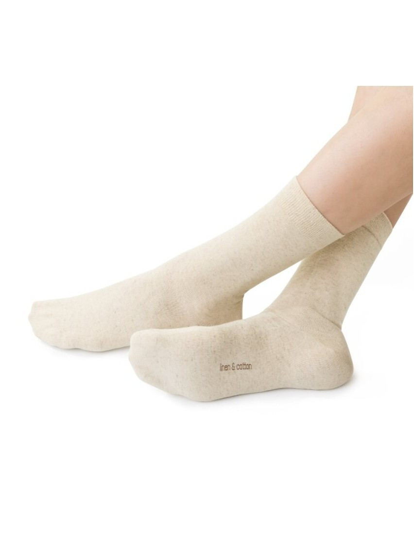 Dámské a pánské ponožky - z bavlny a lnu - poskytují vynikající prodyšnost - odvádějí vlhkost na vnější stranu - antibakteriální a bakteriostatické vlastnosti - pohodlné bezešvé švy - jemné žebrování Složení: 65 % bavlna, 25 % len, 8 % polyamid, 2 % elastan
