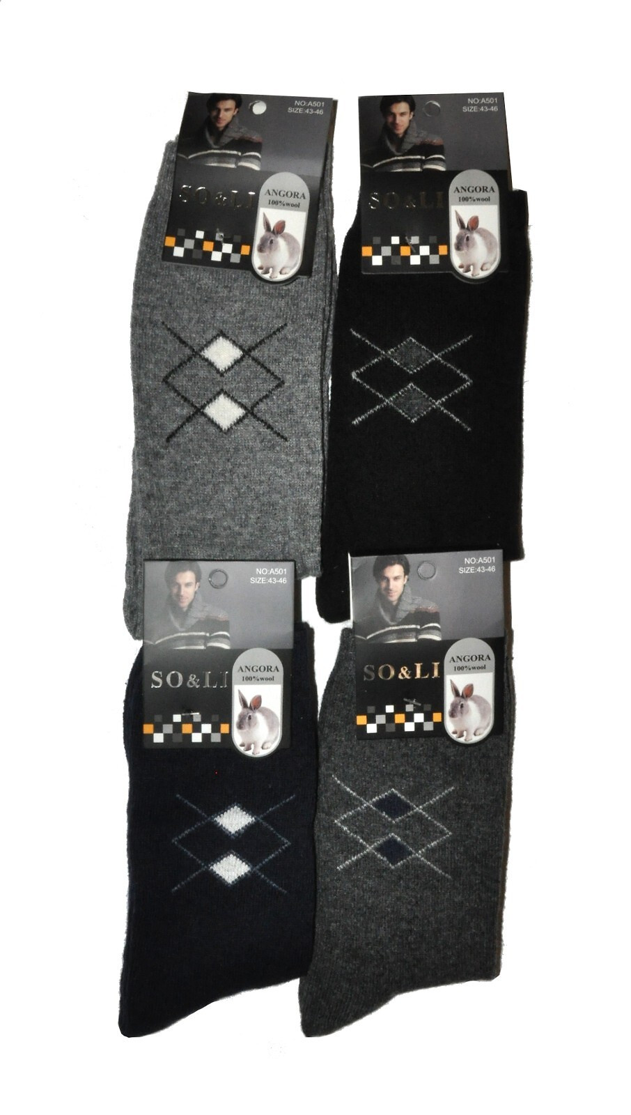 Pánské ponožky - z vysoce kvalitní vlněné příze - zdobené jemným vzorem - náhodně vybrané dostupné barvy: grafitová, černá, šedá, tmavě modrá Složení: 95 % angora, 5 % spandex