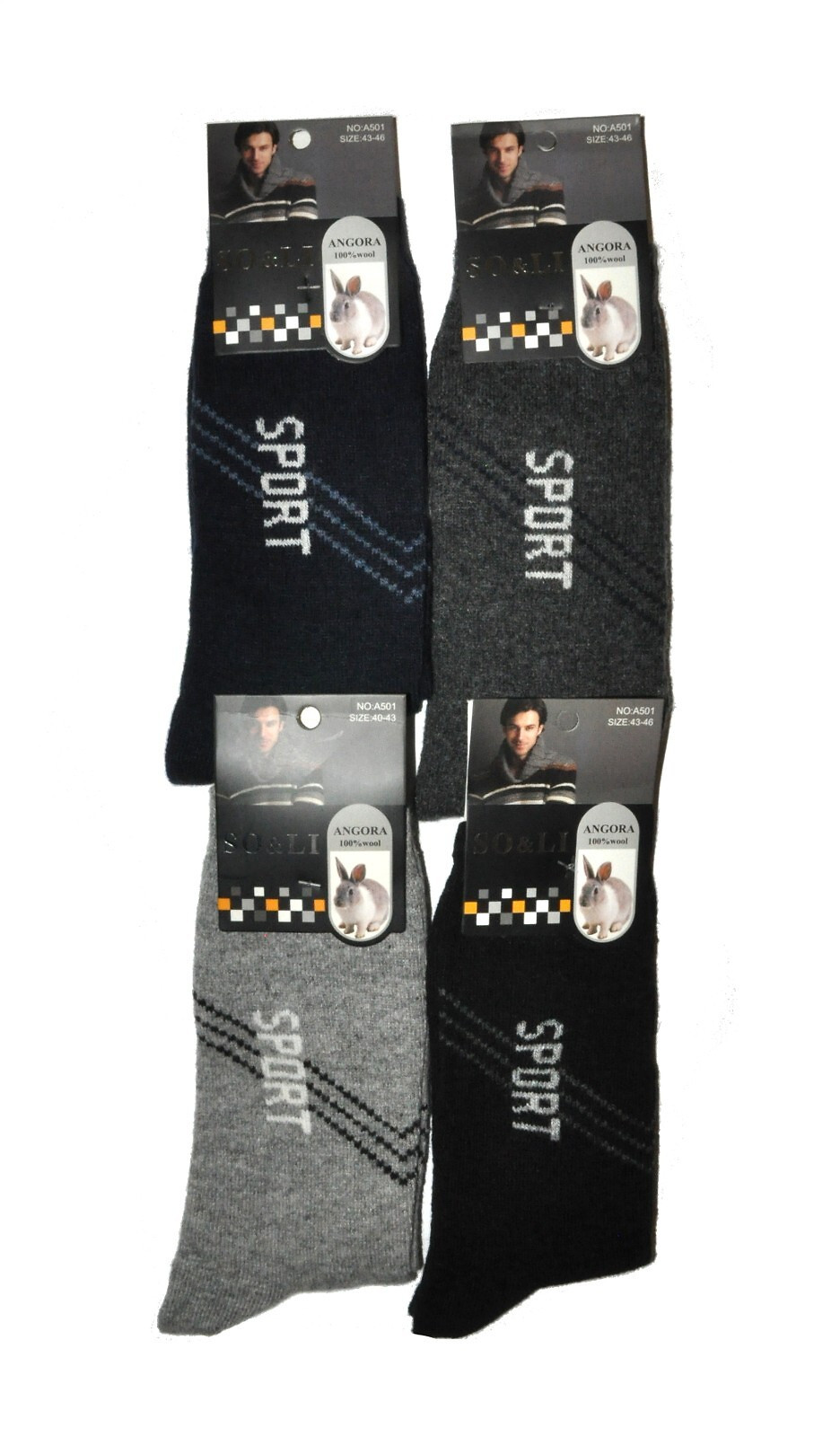 Pánské ponožky - z vysoce kvalitní vlněné příze - zdobené nápisem Sport - náhodně vybrané dostupné barvy: grafitová, černá, šedá, tmavě modrá Složení: 95 % angora, 5 % spandex