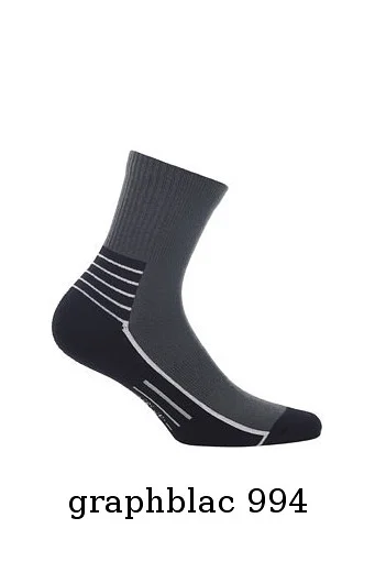 Pánské ponožky jsou vyrobené z vysoce kvalitní bavlny (78%) s ionty stříbra a elastických vláken.  Spodní část z froté materiálu. Ploché švy, beztlakový okraj, elastický pásek a zesílená konstrukce paty i prstů. Ponožky jsou ideální pro aktivní osoby. Díky vláknům Prolen Siltex jsou ponožky velmi pohodlné během fyzické námahy a zabraňují pocení se chodidla. Originální vzory skvěle komponují z aktivním stylem života. Dostupné barvy: bílá, bílá-grafitová, bílá-šedá, grafitová-černá, šedá-grafitová, černá-jeans, šedá-jeans.