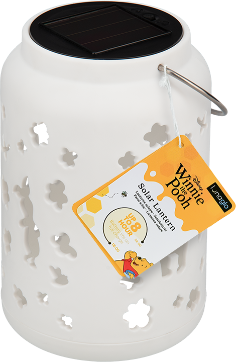 Pooh LunaGlo (solar) lampa Pooh LunaGlo je tematická lampa s motivem Disney, konkrétně Medvídka Pú. Jedná se o licenční produkt zařazený do kategorie Merch a licenční dárky, který spadá do skupiny ostatních hraček. Lampa je určena především dětem a fanouškům tohoto známého kresleného medvídka. Její design je věrný originálnímu vzhledu postavičky, což z ní činí zároveň praktický osvětlující doplněk i sběratelský předmět. Lampa má tvar stylizovaného Medvídka Pú s měkkými, zaoblenými tvary a příjemnými barevnými odstíny, které odpovídají klasickému vzhledu této postavičky – převládá žlutá barva s detaily v červené a hnědé. Povrch lampy je hladký a vyrobený z kvalitního plastu, což zajišťuje bezpečné používání i dětem. Na základně lampy je umístěn solární panel, který umožňuje dobíjení přirozeným světlem, čímž se lampa stává energeticky úsporným a ekologickým produktem. Pooh LunaGlo je napájena jednou NiMH baterií, která je součástí balení, což usnadňuje okamžité použití po zakoupení. Lampa je navržena tak, aby se snadno ovládala a byla vhodná pro noční osvětlení dětského pokoje nebo jako doplněk při večerních aktivitách. Díky své solární funkci je možné ji nabíjet i bez nutnosti připojení k síti, což zvyšuje její mobilitu a komfort používání. Tento produkt je vhodný nejen jako hračka, ale také jako praktický osvětlující doplněk s oblíbeným motivem Disney, který zaujme děti i sběratele. Pooh LunaGlo kombinuje zábavný design s funkčností a ekologickou šetrností, což odpovídá současným trendům v oblasti dětských produktů.