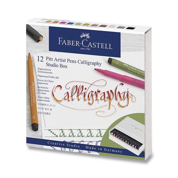 Moderní umělecký popisovač se seříznutým hrotem v dárkovém boxu. ŠÍŘKA HROTU 2,5 MM, PH neutrální inkoust bez obsahu kyselin, bez zápachu, inkoust je odolný proti působení slunečního záření, seříznutý kaligrafický hrot, po zaschnutí voděodolný, vhodný pro savý a tmavý papír, Naučte se moderní kaligrafii a oslňte přátele či rodinu krasopisně napsaným pohledem, pozvánkou, cedulkou k dárku, nebo vyšperkovaným ručně napsaným dopisem. Návod najdete v, článcích Jak se naučit abecedu krasopsaní >>, Řada KREATIVNÍ STUDIO představuje sortiment pro kreativní amatérské umělce, kteří v rámci svých aktivit ve volném čase rádi používají vysoce kvalitní výrobky za přijatelnou cenu., Mezi výrobky Faber Castell je bezpečně poznáte podle modrého loga na přebalu. Zakupte produkt Popisovač Faber-Castell Pitt Artist Pen Calligraphy sada 12 ks, studio box z kategorie Výtvarné potřeby | Kreativita | Fixy, popisovače od výrobce Faber-Castell za cenu 829 Kč.