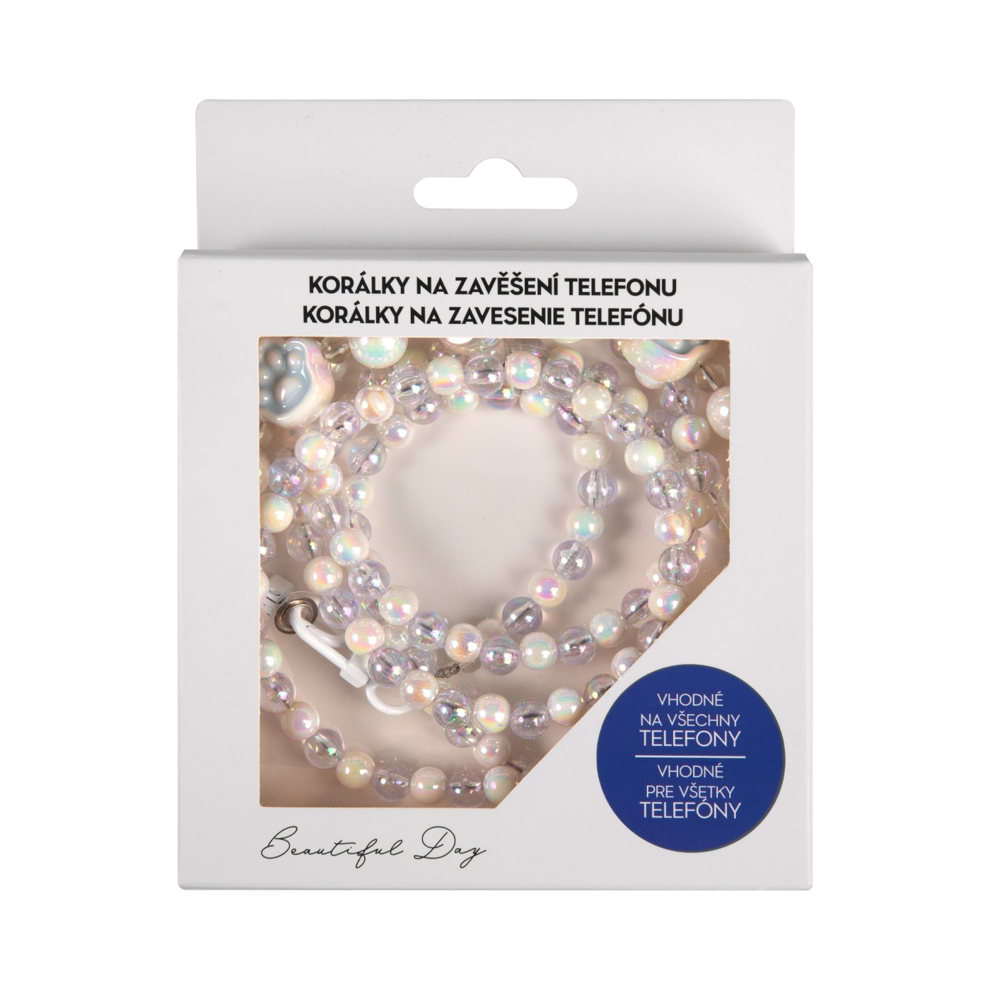 Perlový popruh na telefon dodá vašemu zařízení bezpečí. Stačí vložit plastovou vložku do vašeho krytu a řetízek protáhnout otvorem na nabíjení. Délka popruhu: 63 cm