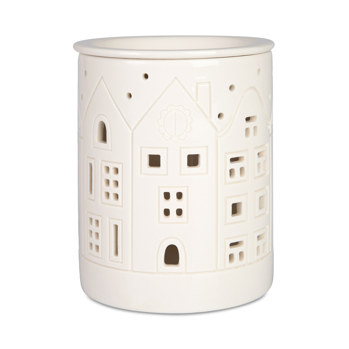 Porcelánová aromalampa s různorodými domečky zútulní každý prostor. Materiál aromalampy: porcelán Výška aromalampy: 13,5 cm Průměr aromalampy: 10,5 cm