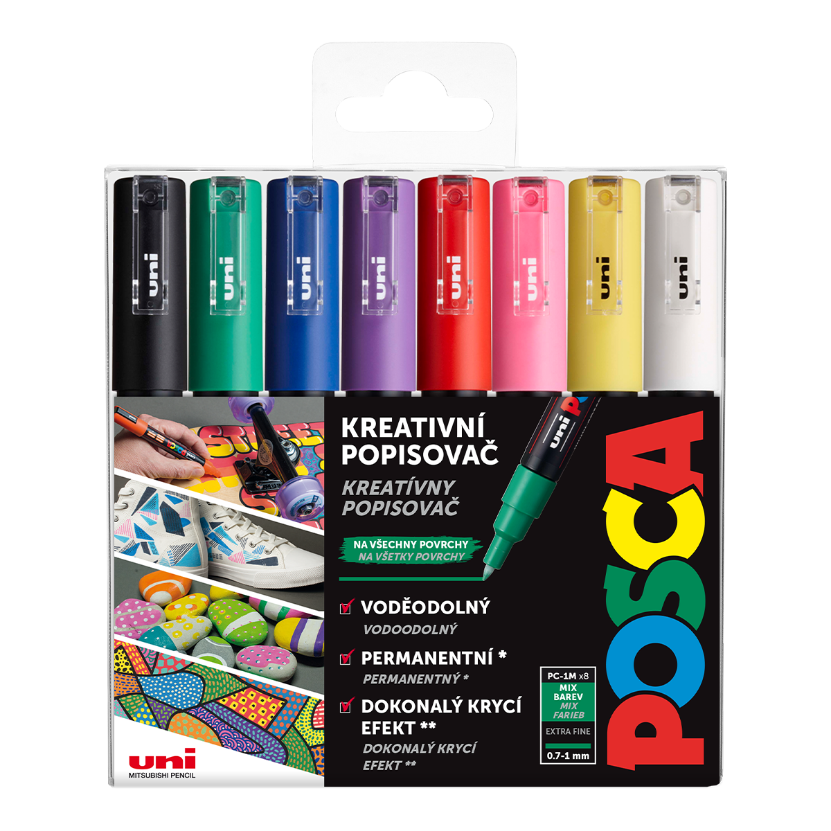 Dekorační akrylový popisovač vhodný na různé povrchy.. Sada oblíbených tenkých popisovačů se skutečně jemným hrotem. Jsou ideální pro popis a grafickou práci na malé ploše. Ideální pro děti i dospělé pro přesné kresby tenkou linkou v široké škále barev. Tl. linky: 0,7–1 mm tenký hrot. Obsahuje bezkonkurenční inkoust, jehož složení se od svého vytvoření nezměnilo, je mimořádně bohatý na pigmenty a je extrémně odolný vůči atmosférickým podmínkám a plynutí času. Jeho matné barvy mají velkou hloubku - umělci je milují pro svá díla a fandové jsou ohromeni „magickým“ efektem Posca. Obsahuje jedinečný ventilový mechanismus, který zaručuje perfektní utěsnění a šetří barvu v průběhu času. Stejný mechanismus se používá k naplnění popisovačů Posca pro použití a k opětovnému nasycení špičky tak často, jak je to nutné během tvoření. Barva je velmi bohatá na pigmenty, čímž vykazuje výsledky vynikající hustoty. Jeho jedinečné složení na vodní bázi poskytuje jasné, matné, neprůhledné barvy, které opravdu vydrží. Je bez zápachu. Barvy jsou vrstvitelné, mísitelné, vodou rozpustné, odolné vůči povětrnostním vlivům a nabízejí neomezené kreativní možnosti. Vyrobeno v Japonsku.