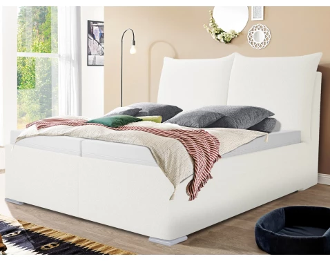 Komfortní vysoká postel zaujme zadním čelem s velkými polštáři, které přímo pobízí k relaxaci a pohodlnému spánku. K pohodlí přispívají také rošty s polohovatelnou funkcí hlavy i nohou. Úložné prostory ve spodní části překvapí nečekaným objemem, který oceníte při ukládání lůžkovin, prádla nebo třeba sezónních věcí. Postel je očalouněna měkoučkou látkou s delším strukturovaným vlasem v odstínu smetanově bílá. Postel tak působí v prostoru ložnice velmi luxusně.