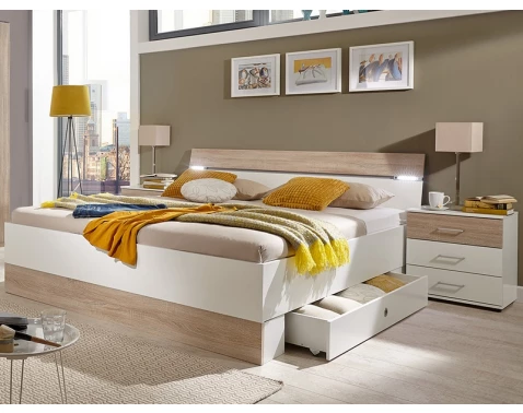 Postel s nočními stolky Cheep 180x200 cm, bílá/dub sonoma