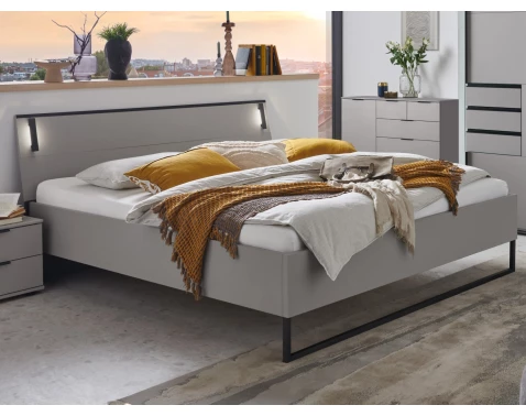 Postel s osvětlením z programu Tilburg - moderní nábytek do ložnice v barvě šedá sahara má čisté linie a nadčasový design, který lze snadno kombinovat.