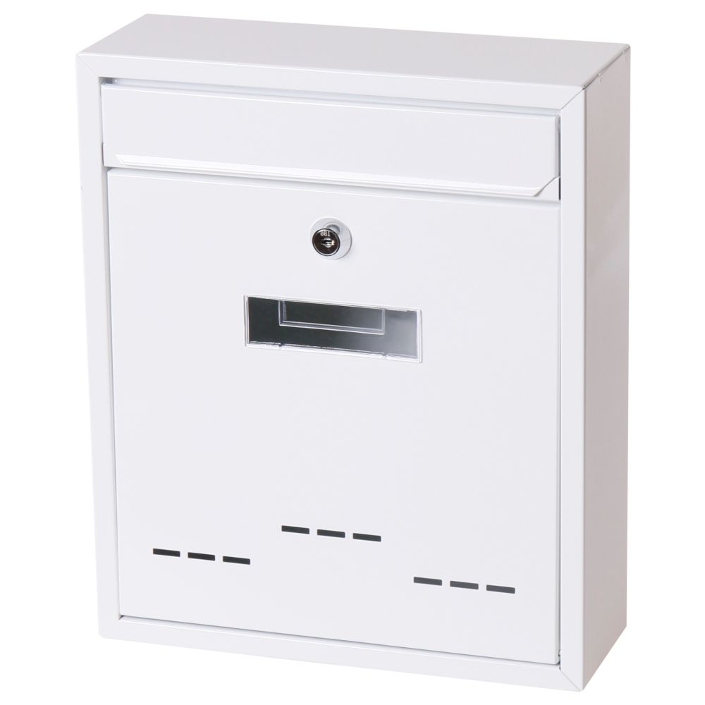 Poštovní schránka vyrobená z ocelového plechu s povrchovou úpravou kvalitním práškovým lakem. Schránka je opatřena cylindrickým zámkem proti vniknutí a průhledem s možností vložení štítku. Tato poštovní schránka je určena jak do interiéru, tak hlavně do exteriéru. Velkou výhodou této schránky je možnost vytváření nástěnných sestav do bytových domů. Montážní sada ( hmoždinky a vruty ) je součástí balení. Celkové rozměry:26 x 31 x 9 cm ( Š x V x H )Materiál schránky:ocelový plechPovrchová úprava:prášková barva ( komaxit )Barva:bíláPřídavný box:neVhoz:na čelní straně, krytýPočet klíčů:2