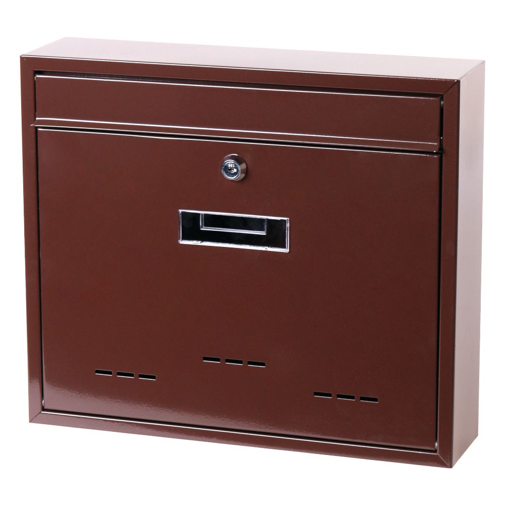 Poštovní schránka vyrobená z ocelového plechu s povrchovou úpravou kvalitním práškovým lakem. Schránka je opatřena cylindrickým zámkem proti vniknutí a průhledem s možností vložení štítku. Tato poštovní schránka je určena jak do interiéru, tak hlavně do exteriéru. Velkou výhodou této schránky je možnost vytváření nástěnných sestav do bytových domů. Montážní sada ( hmoždinky a vruty ) je součástí balení. Celkové rozměry:36 x 31 x 9 cm ( Š x V x H )Materiál schránky:ocelový plechPovrchová úprava:prášková barva ( komaxit )Barva:hnědáPřídavný box:neVhoz:na čelní straně, krytýPočet klíčů:2