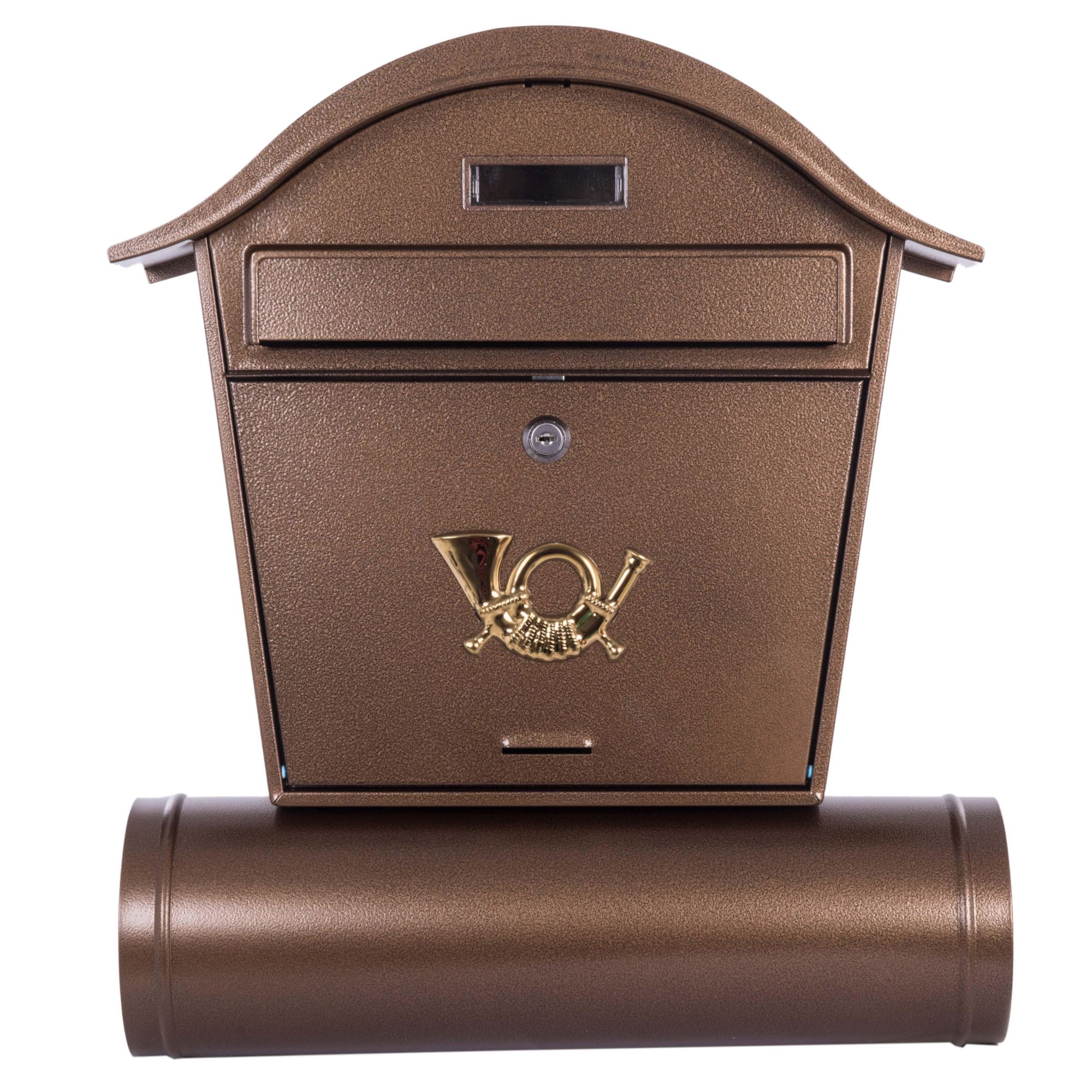 Poštovní schránka ST 103, hnědá kladívková (antická), s kulatou stříškou a tubusem na noviny, 460×135×410 mm je elegantní a praktické řešení pro bezpečné uložení poštovních zásilek. Kombinuje klasický design s kulatou stříškou a spodním tubusem na noviny, který poskytuje dostatek prostoru pro dopisy, časopisy i reklamní tiskoviny.Schránka je vyrobena z kvalitního ocelového plechu s odolnou povrchovou úpravou v hnědé kladívkové (antické) barvě, která působí elegantně a zároveň chrání proti povětrnostním vlivům. Vhozový otvor je opatřen krytkou pro lepší ochranu obsahu před deštěm. Uzamykatelná dvířka s klíči v balení zajistí bezpečnost uložené pošty.Klíčové vlastnosti• Poštovní schránka ST 103 s kulatou stříškou a tubusem na noviny• Rozměry: 460×135×410 mm• Barva: hnědá kladívková (antická) – elegantní vzhled, vyšší odolnost• Materiál: ocelový plech s povrchovou úpravou proti povětrnosti• Vhozový otvor s krytkou – ochrana proti vlhkosti• Uzamykatelná dvířka, součástí balení jsou klíče• Prostorný tubus pro uložení novin a letáků✔ Elegantní design v hnědé kladívkové (antické) barvě✔ Spolehlivá ochrana pošty i tiskovin před deštěm a prachem✔ Uzamykatelná dvířka zajišťují bezpečnost zásilek✔ Praktické řešení díky tubusu na noviny✔ Snadná montáž na fasádu nebo plotový sloupekTechnická specifikace• Model: ST 103• Typ: poštovní schránka s kulatou stříškou a tubusem na noviny• Rozměry: 460×135×410 mm• Materiál: ocelový plech s povrchovou úpravou• Barva: hnědá kladívková (antická)• Uzamykání: ano, klíče v balení• Hmotnost: cca 1 kg