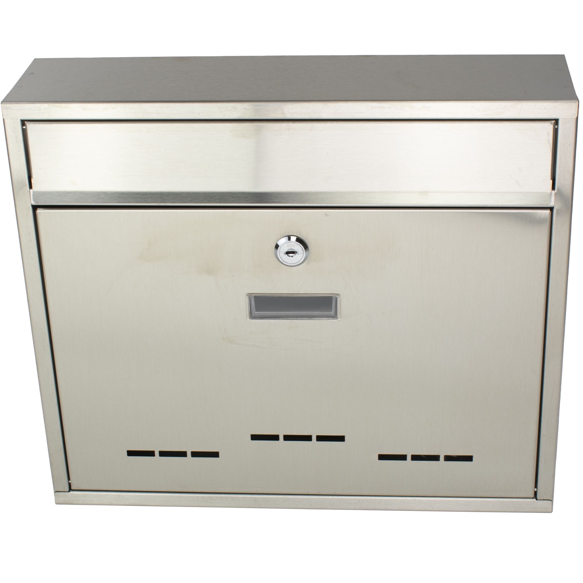 Poštovní schránka vyrobená z kvalitního nerezového plechu. Schránka je opatřena cylindrickým zámkem proti vniknutí a průhledem s možností vložení štítku.Tato poštovní schránka je určena jak do interiéru, tak hlavně do exteriéru. Je možné ji také použít do sestav v bytových domech.Montážní sada ( hmoždinky a vruty ) je součástí balení.Celkové rozměry:36 x 31 x 9 cm ( Š x V x H )Materiál schránky:nerezový plechPovrchová úprava:brusBarva:nerezPřídavný box:neVhoz:na čelní straně, krytýPočet klíčů:2