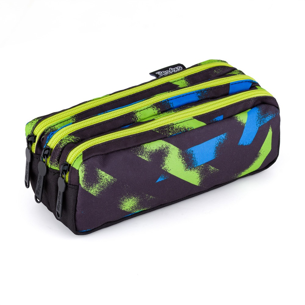 Rozměr: 220*80*80 mm, Hmotnost : 90 gPraktické pouzdro pro školáky na druhém stupni se třemi kapsami na zip. Praktické uspořádání poskytuje dostatek místa na psací potřeby a další nezbytnosti. Parťák na každý školní den.