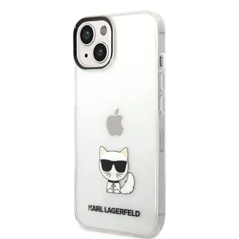 Pouzdro Karl Lagerfeld Choupette Logo iPhone 14 Plus - čiré