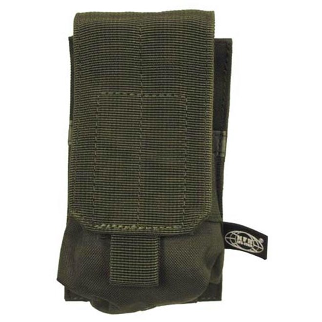 Pouzdro modulárního systému MOLLE na jeden zásobník Zásobník je jištěn proti vypadnutí chlopní na suchý zip. Pouzdro je možné díky polohovatelné chlopni upravit pro různé délky zásobníku. Přes pouzdro je našitý široký pás pruženky, který stahuje prostor pro zásobník, a tím je v pouzdře lépe fixován. Pro upevnění k opasku, či jiné součásti výstroje, slouží dva pásky rozepínatelné na jedné straně kovovým patentem. Rozměry: 9 x 16 x 5 cm Hmotnost: 85 g Výrobce: MFH, Německo