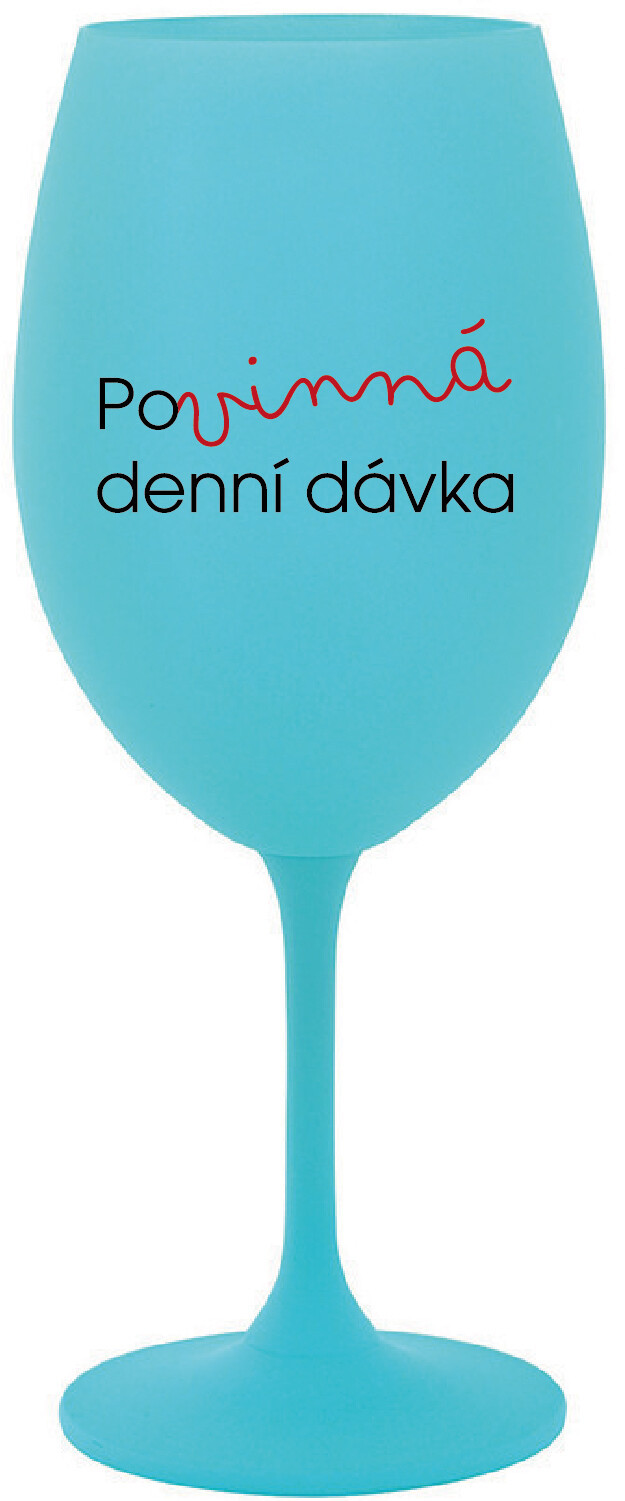 Vinná tyrkysová sklenice s originálním motivem POVINNÁ DENNÍ DÁVKA je krásným a osobitým dárkem, které ale využijete i Vy sami třeba ve chvílích, kdy si budete chtít zpříjemnit náročný den. Tyto originální vinné sklenice jsou totiž nejen pro výjimečné události, ale i pro běžné večery, které si chcete zpříjemnit sklenkou dobrého vína. Jistě proto potěší každého milovníka vína, i toho, kdo si umí svůj život vychutnat plnými doušky. Materiál sklo. Vyrobené s láskou v ČR