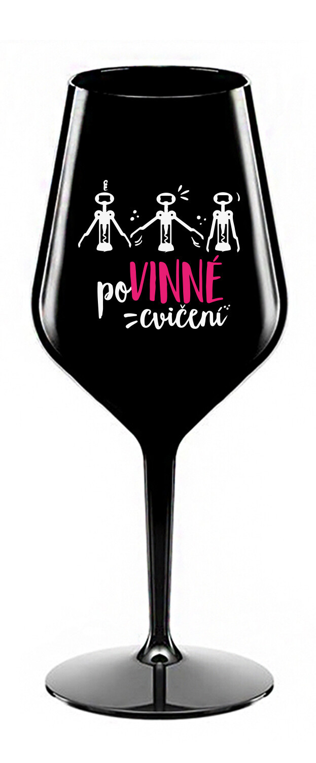 Nerozbitná černá vinná sklenice s motivem POVINNÉ CVIČENÍ je skvělá na zahradu, pláž, výlet, piknik a parádu udělá i při kempování. Jelikož je vyrobená z kvalitního polykarbonátu je de facto nerozbitná. Je to luxusní kousek, s nímž si víno můžete vychutnat prostě kdekoliv. Mají ergonomický tvar, který příjemně padne do ruky a protože je lehká, usnadňuje to její přenášení. Je snadno skladovatelná a lehce se čistí. Díky svému designu si s ní můžete vychutnat doopravdy kdekoliv bezproblémové pití výborného vína.