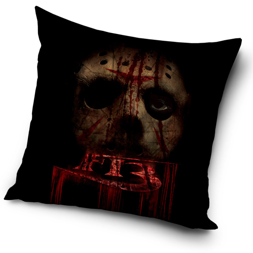 Povlak na polštářek k Halloweenu Pátek 13 Povlak na polštářek pro Hallowwenskou párty Pátek 13, je vyrobený ze 100% polyesteruPovláček je vyrobený v rozměru 40x40 cm a má zipové zapínáníPojďte se na chvíli bátPovláček Pátek 13 lze zakoupit i jako polštářek