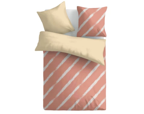 Moderní a nadčasové pruhované povlečení v lososovém odstínu je vyrobeno z bavlny renforcé, která je špičkou v bavlněném textilu. Je jemnější, hebčí a příjemnější na dotek, navíc má zvýšené absorpční vlastnosti, odvádí vlhkost, je odolnější vůči otěru a má delší živostnost. Rozměr 140x200 cm.