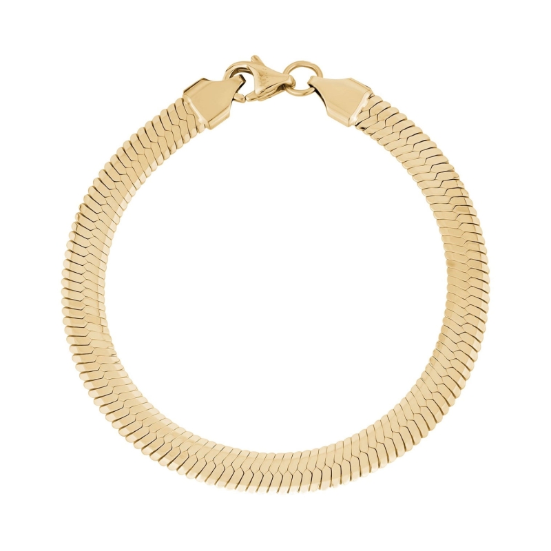 Elegantní náramek z chirurgické oceli v designu herringbone, známém jako plochý had, přináší do vaší kolekce nadčasový šperk s luxusním vzhledem. Jeho šířka 5 mm a hladký, flexibilní povrch dokonale obepínají zápěstí a vytvářejí sofistikovaný efekt. Díky pozlacené úpravě působí náramek jako šperk z pravého zlata, přičemž si zachovává výhody odolné chirurgické oceli, která je hypoalergenní a snadno se udržuje.Tento náramek je univerzálním doplňkem, který se hodí ke každodennímu nošení i k elegantním outfitům. Lze jej nosit samostatně jako výrazný prvek nebo kombinovat s dalšími náramky pro trendy vrstvený vzhled. Pokud hledáte stylový a nadčasový šperk, který podtrhne vaši osobnost, tento pozlacený herringbone náramek je skvělou volbou. 💡Tip: Hledáte doplněk, který nikdy nevyjde z módy? Tento náramek v nadčasovém herringbone stylu je skvělou volbou pro ty, kteří oceňují eleganci s moderním nádechem. Perfektní volba pro vrstvení i nošení samostatně.