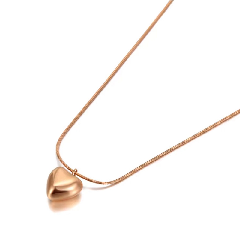 Tento ocelový náhrdelník s přívěskem ve tvaru srdce v jemné růžově zlaté barvě symbolizuje něhu a eleganci. Jeho minimalistický design v kombinaci s moderním odstínem růžového zlata z něj činí ideální doplněk pro každou ženu, která si potrpí na decentní, ale stylové šperky. Přívěsek srdce působí jako sofistikovaný symbol lásky a harmonie. Jemné zakřivení a hladký povrch dodávají náhrdelníku nadčasový vzhled, díky čemuž skvěle zapadne jak do každodenního šatníku, tak i k slavnostním příležitostem. Je perfektní pro všechny, kdo hledají šperk s osobním významem. Tento náhrdelník je ideálním dárkem, který potěší svou elegancí i symbolikou. Hodí se nejen jako dárek k výročí nebo Valentýnu, ale i jako jemná pozornost, kterou lze darovat při speciálních příležitostech. 💡Tip: Pro romantický večer zkombinujte tento náhrdelník s jemnými růžově zlatými náušnicemi nebo náramkem. Pro ležérnější styl jej můžete nosit s bílou košilí a džíny, čímž vytvoříte elegantní a přirozený vzhled.
