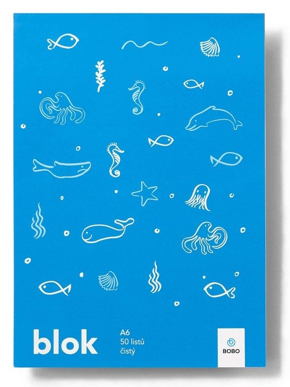 Malý poznámkový blok A6 s čistými listy a ručně kreslenými motivy mořského světa je určen pro rychlé poznámky, kresby nebo náčrty. Poznámkový blok pro děti s motivem moře je vhodný pro školní zápisky, rychlé kresby, rozepisování nebo čmárání. Praktická velikost A6 se vejde do každého batůžku nebo aktovky. Tento notýsek musí mít každý školák. Poznámkový blok Svět A6 • Formát: A6 • Počet listů: 50 • Papír: 70 g • Lineatura: Čistá • Vazba: Lepená