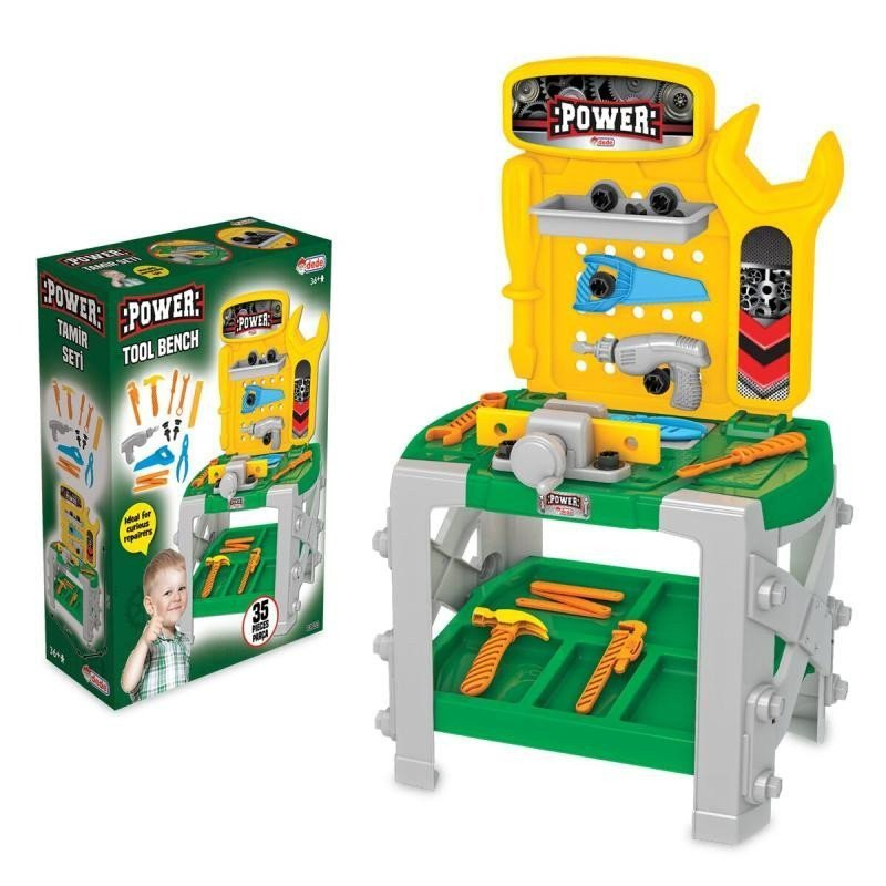 Dětský plastový ponk s nářadím a doplňky je velmi hezká hračka pro malé kutily, kteří rádi pomáhají svým tatínkům při opravách v domácnosti. Rozměr balení je 410x170x595