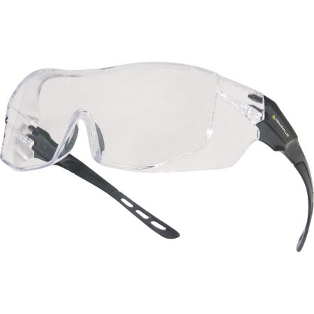Ochranné polykarbonátové brýle jednočočkové. Boční ochrana. Integrovaný nosní polykarbonátový můstek. Poddajné polykarbonátové stranice. Vhodné pro použití v kombinaci se všemi typy dioptrických brýlí. Polykarbonát.