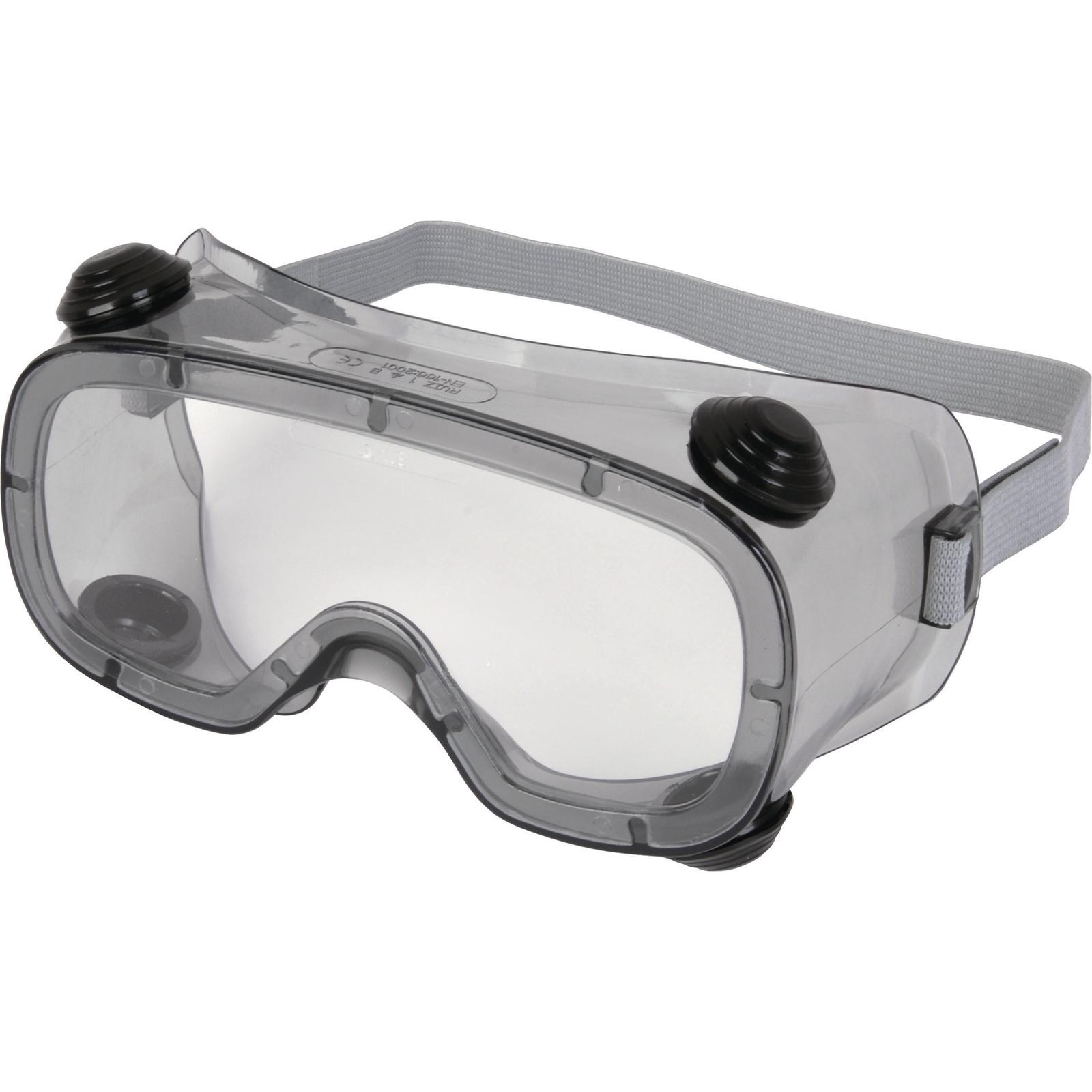 Uzavřené brýle z polykarbonátu. Ohebný rám z PVC. Nepřímá ventilace čtyřmi otvory. Textilní elastický řemínek. Obroučky: měkčené PVC. Zorník: polykarbonát.