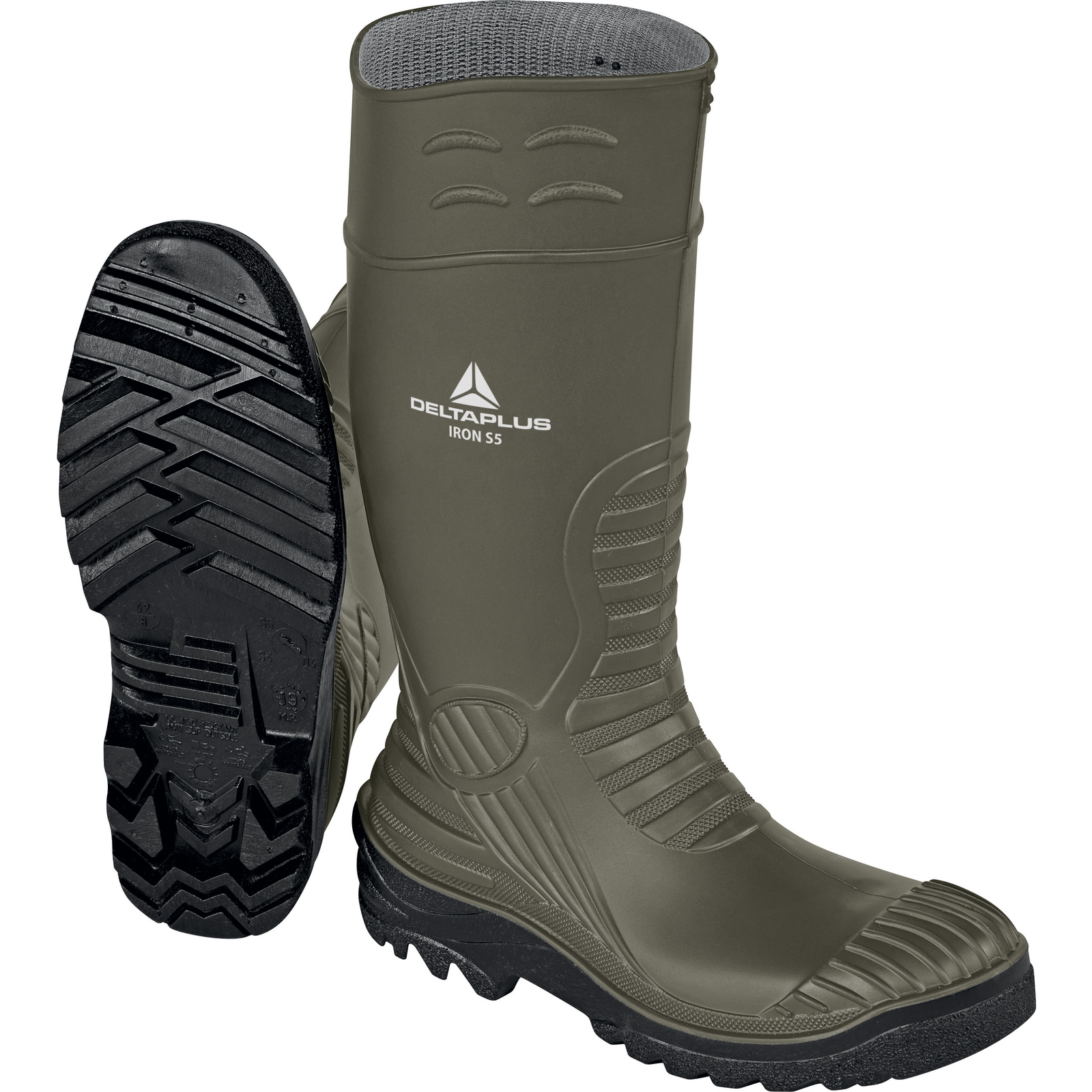 - Materiál: Svršek: PVC. Podšívka: polyester. Ochrana kotníků. Ochrana špice a paty. Poutko na zadní straně. Ochranná špice: nerezavějící ocel. Podrážka odolná proti perforaci: nerezavějící ocel. Mezipodešev: PVC - nitril.