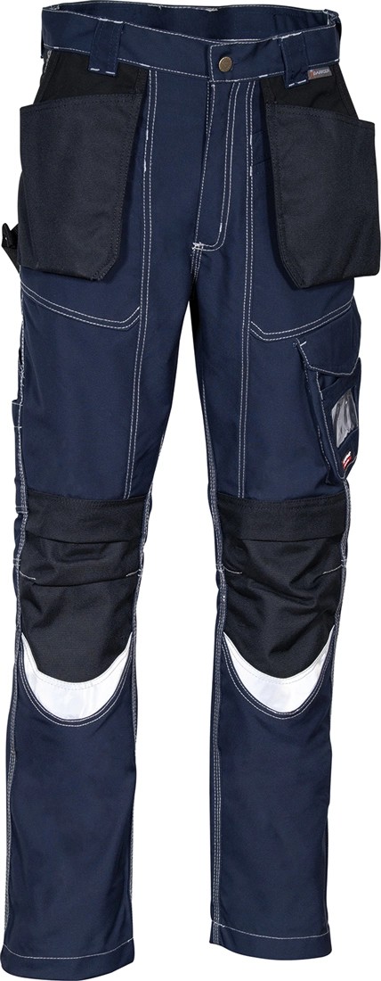 • 4 široké přední kapsy, zesílené v rozkroku, 2 zadní kapsy, jedna z nich s patkou, 3M ™ Scotchlite ™ Reflexní materiál reflexní vložky - 8910 stříbrnou látkou, nastavitelné poutko na kladivo, kolena a nohy ergonomický design, boční kapsa,kapsa, CORDURA ® vnější kapsy, CORDURA ® nastavitelné kolenní kapsy, v pase, YKK ® zip