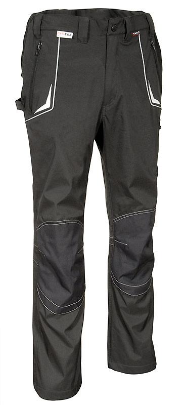 - 1 boční kapsa se zapínáním na zip, 2 zadní kapsy s klopou, 2 široké přední kapsy se zipem, kladívková smyčka, ergonomický design kolen a nohou, nylonové nastavitelné kapsy na kolenech, reflexní vložky, zesílený rozkrok, softshellové kalhoty s vlasovou vnitřní část.