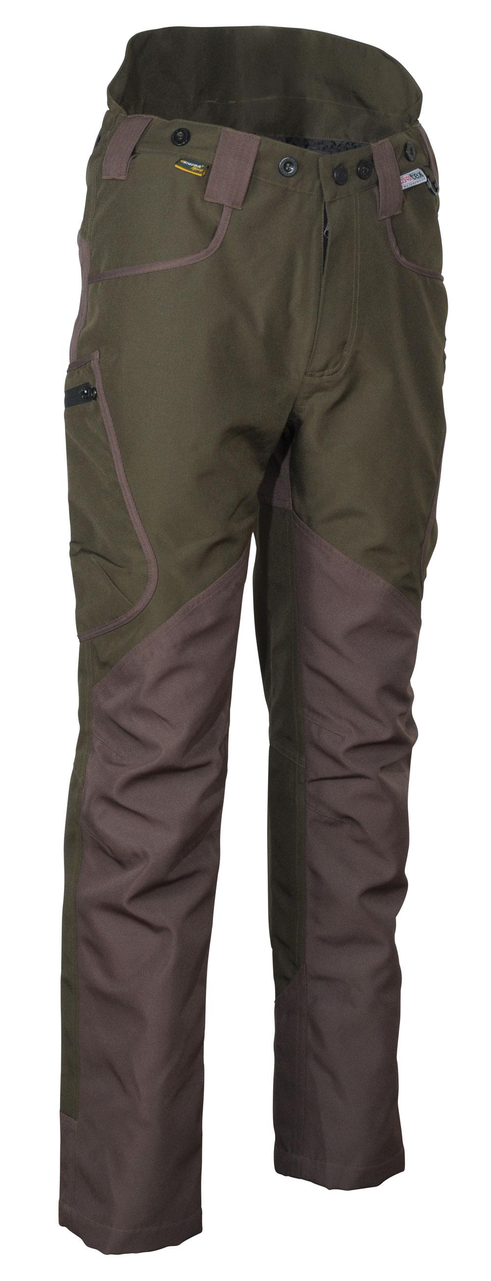 - oděruvzdorná tkanina v oblastech obzvláště namáhaných na přední části až po spodní část nohavic, zadní část a kotníky,