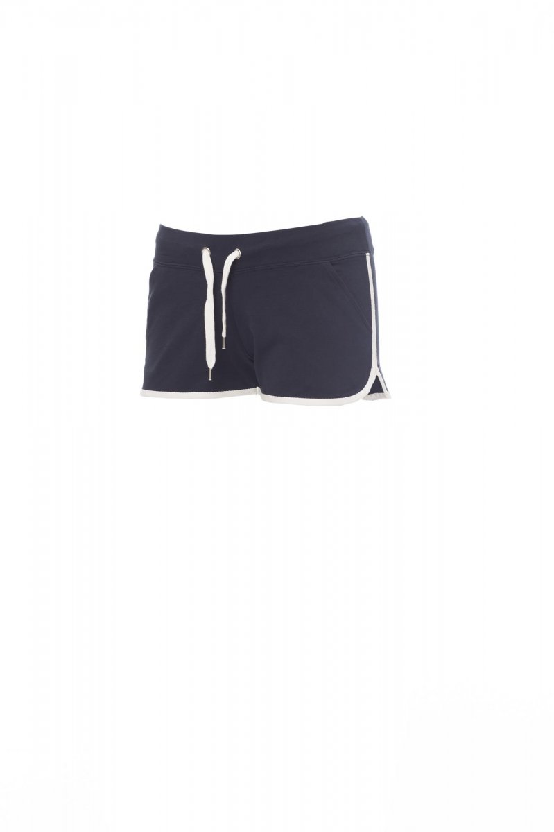 - Dámské teplákové kraťasy s elastickým pasem a stahovací šňůrkou, dvě přední kapsy a kontrastní lem.
