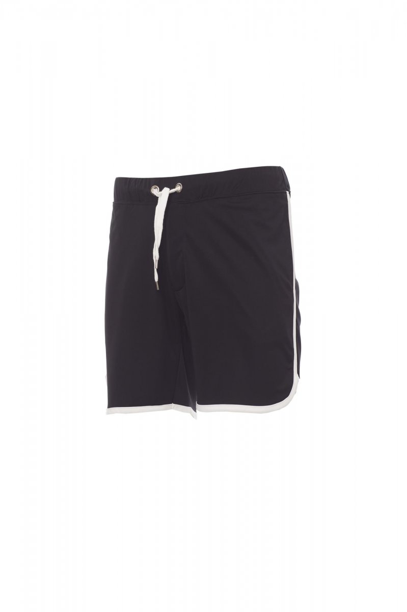 - Unisexové sportovní bermudy se stahovací šňůrkou v pase, s patkou se zipem, dvěma postraněími kapsami a kontrastním lemováním.