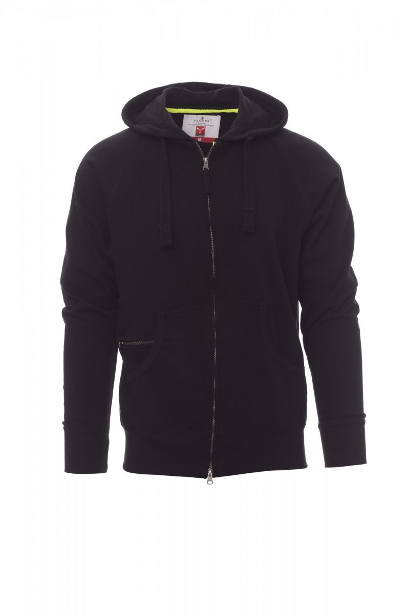 - Pánská mikina s raglánovými rukávy a dvoucestným plným zipem s kapucí. Bílé lano se stahovacími šňůrkami, kontrastní švy a kovové kroužky, klokankové kapsy, malá kapsa s bezpečnostním zipem, manžety s protahovým žebrem a pasem, vyztužené švy.