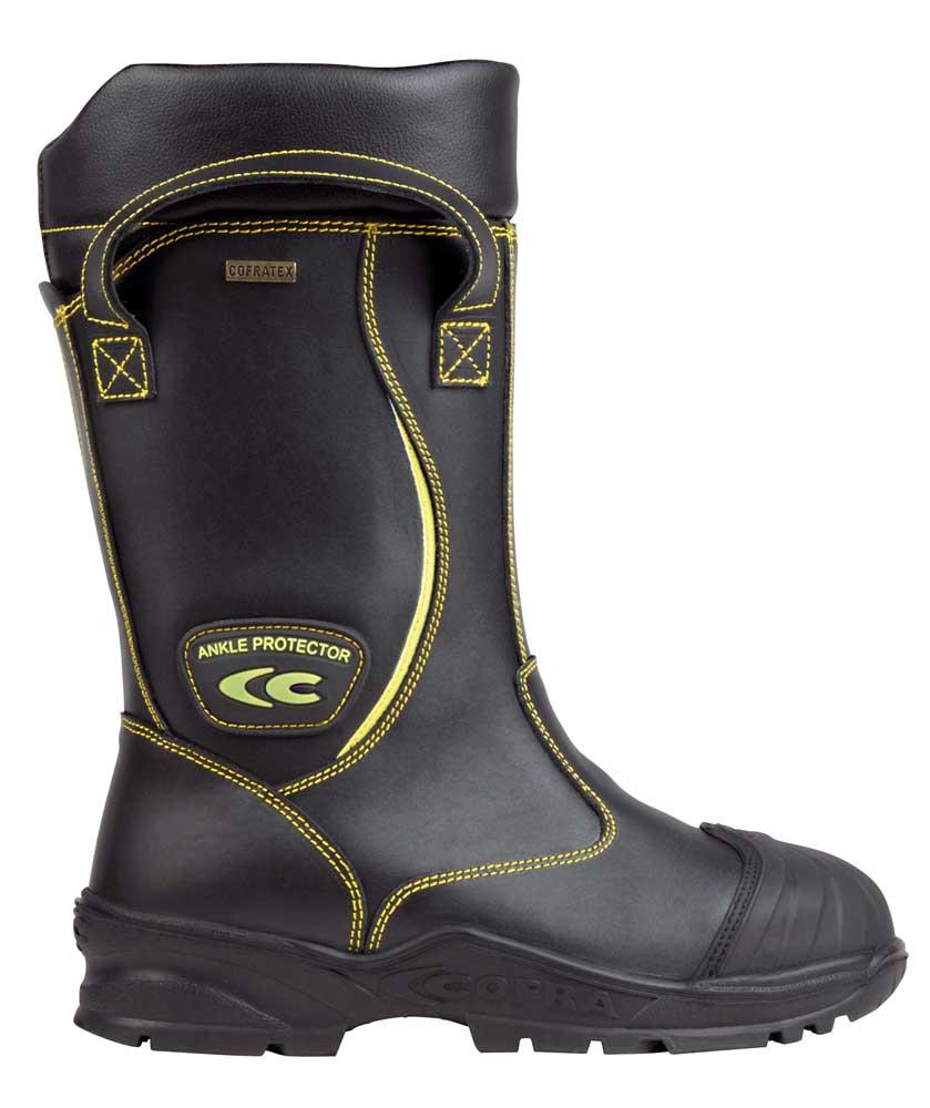 Výhody: Ochrana kotníku proti náhodným nárazům, ohnivzdorné švy, obuv s ochranou proti řezu řetězovou pilou, kožená stahovací smyčka, ochrana pryžové špičky z nitrilové pryže, postranní reflexní pásky pro vysokou viditelnost