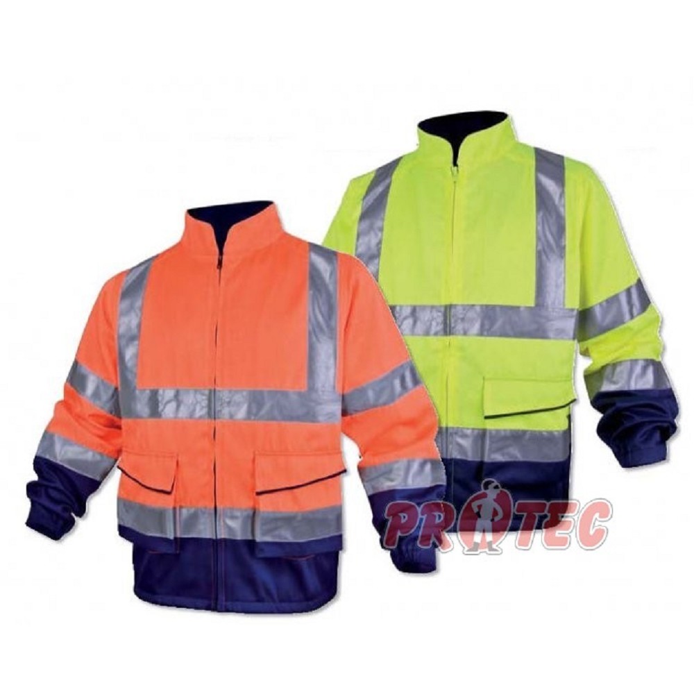 Pracovní reflexní bunda PHVES, Panoply, oranžovo-modrá, Vysoká viditelnost - tída 2 - stříbrná barva, Reflexní pásky přes hruď, ramena a na rukávech. Rukávy do gumy. Barva oranžová ukončení rukávů a spodek bundy nakombinován s tmavě modrou. Zapínání na zip, u krku stojáček. 2 kapsy Materiál:54 % bavlna 46% polyester vel. S-3XL EN 471