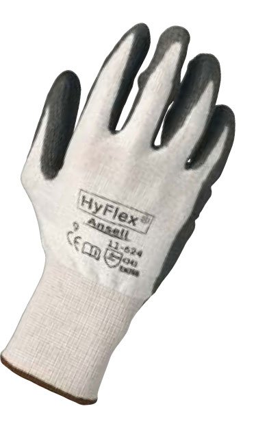 Lehké rukavice HyFlex® 11-624 poskytují pohodlí a obratnost. Je snadné je nosit během dlouhé pracovní doby, protože také poskytují uživateli “pocit chladu”. Díky speciálnímu složení polyuretanového povrstvení jsou rukavice pružné a dobře padnou na ruku a také umožňují bezpečný úchop suchých i lehce zaolejovaných součástek pro spolehlivou manipulaci v široké řadě prostředí.